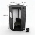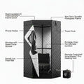 Förvandla ditt badrum eller vardagsrum till ett mini-spa. Kabinen är sexkantig för stabilitet, har quiltat, värmeisolerande tyg och ett genomskinligt fönster så att du kan titta ut. Den separata ångenheten skickar en mild, fuktig värme in i kabinen, och fjärrkontrollen låter dig enkelt justera tiden medan du sitter bekvämt på den medföljande fåtöljen.
